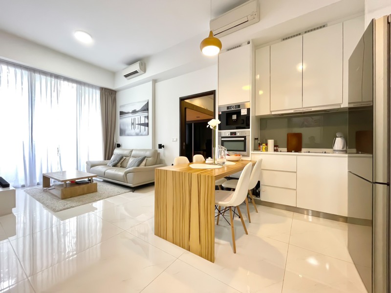 Moreover, it comes with a beautiful island kitchen top which double up as a dining area!